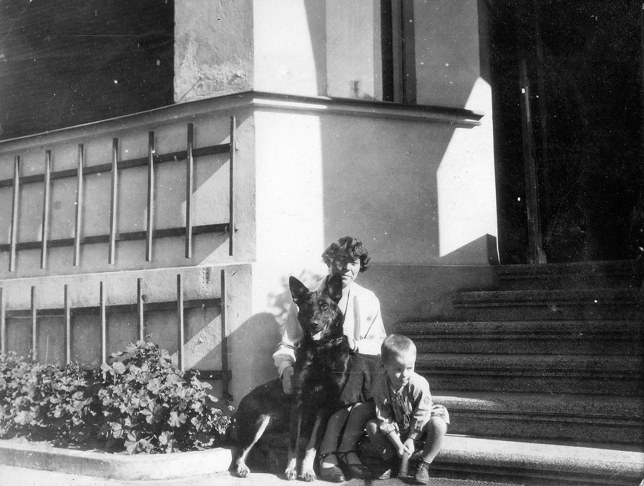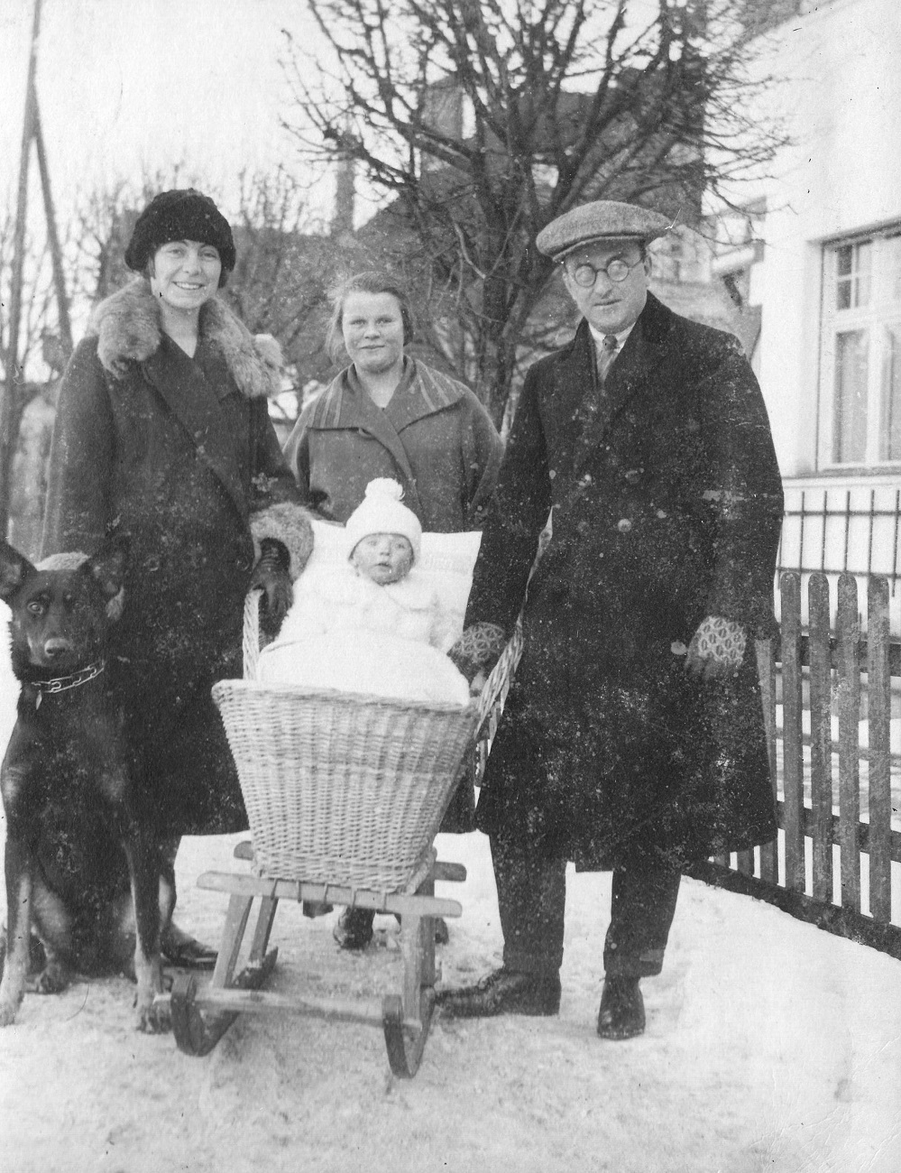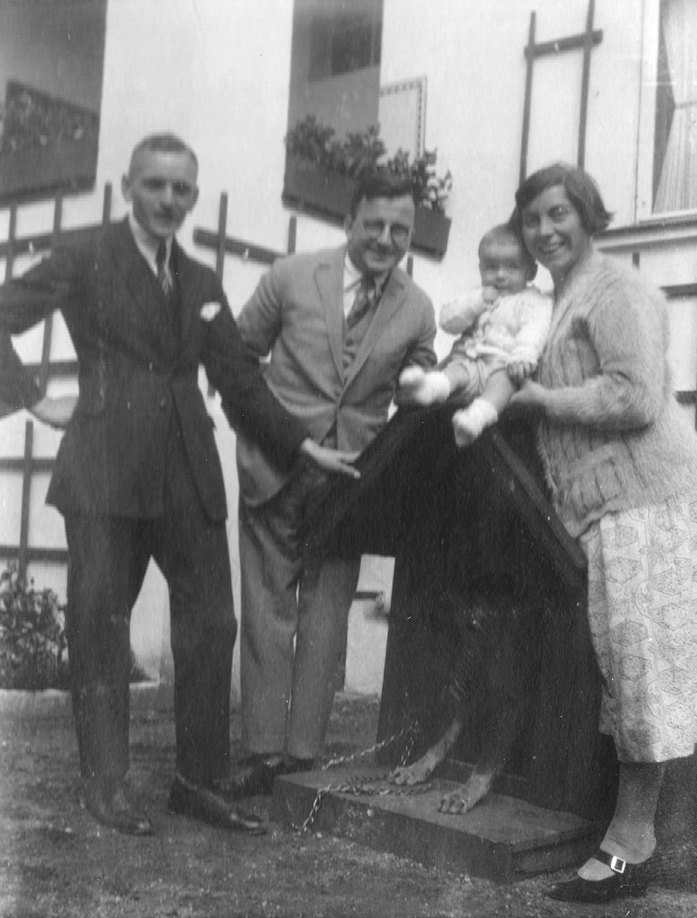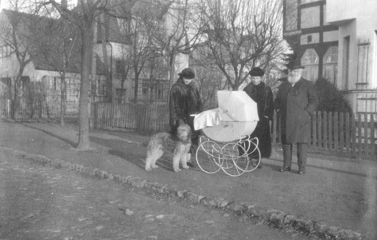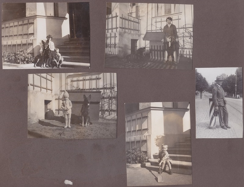 4. Joop i Otto Grimmer z synem, gospodynią i psem przed domem przy ul. Kronprinzenallee 1 (Wita Stwosza 1).