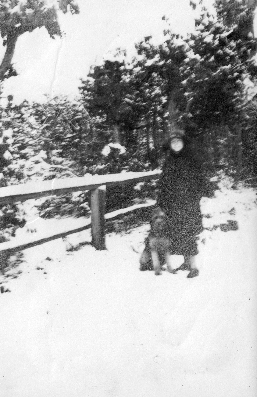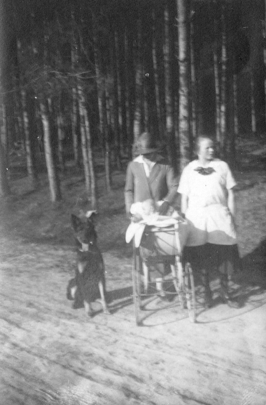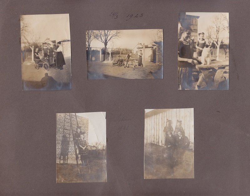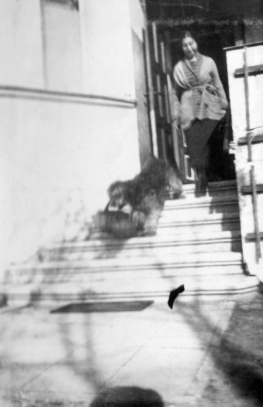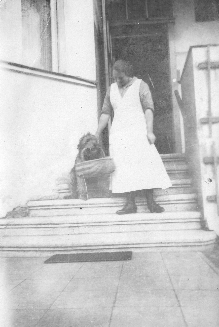 4. Joop i Otto Grimmer z synem, gospodynią i psem przed domem przy ul. Kronprinzenallee 1 (Wita Stwosza 1).