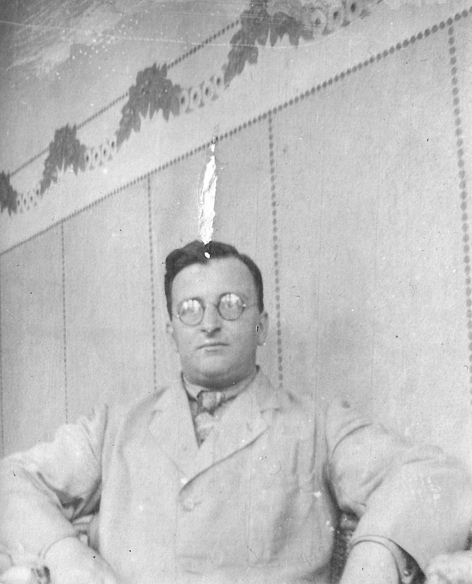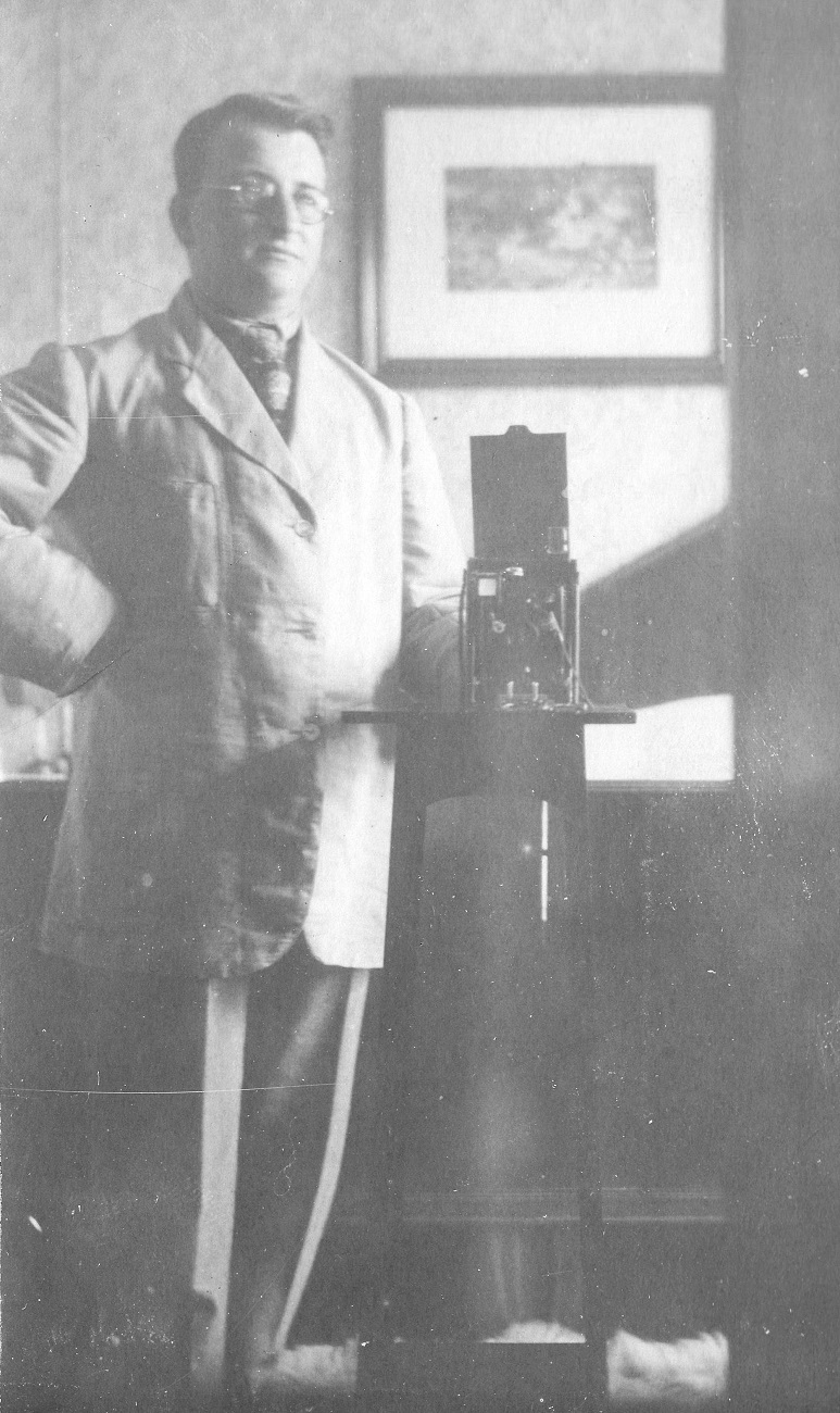 3. Otto Grimmer z aparatem fotograficznym w domu przy ul. Kronprinzenallee 1 (Wita Stwosza 1).