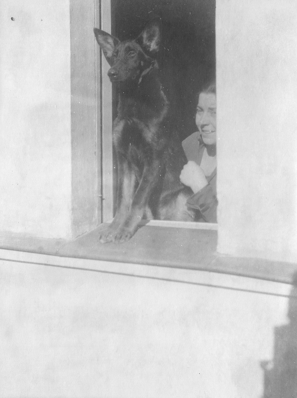 1. Joop Grimmer z psem (Nigger) w oknie domu przy ul. Kronprinzenallee 1.