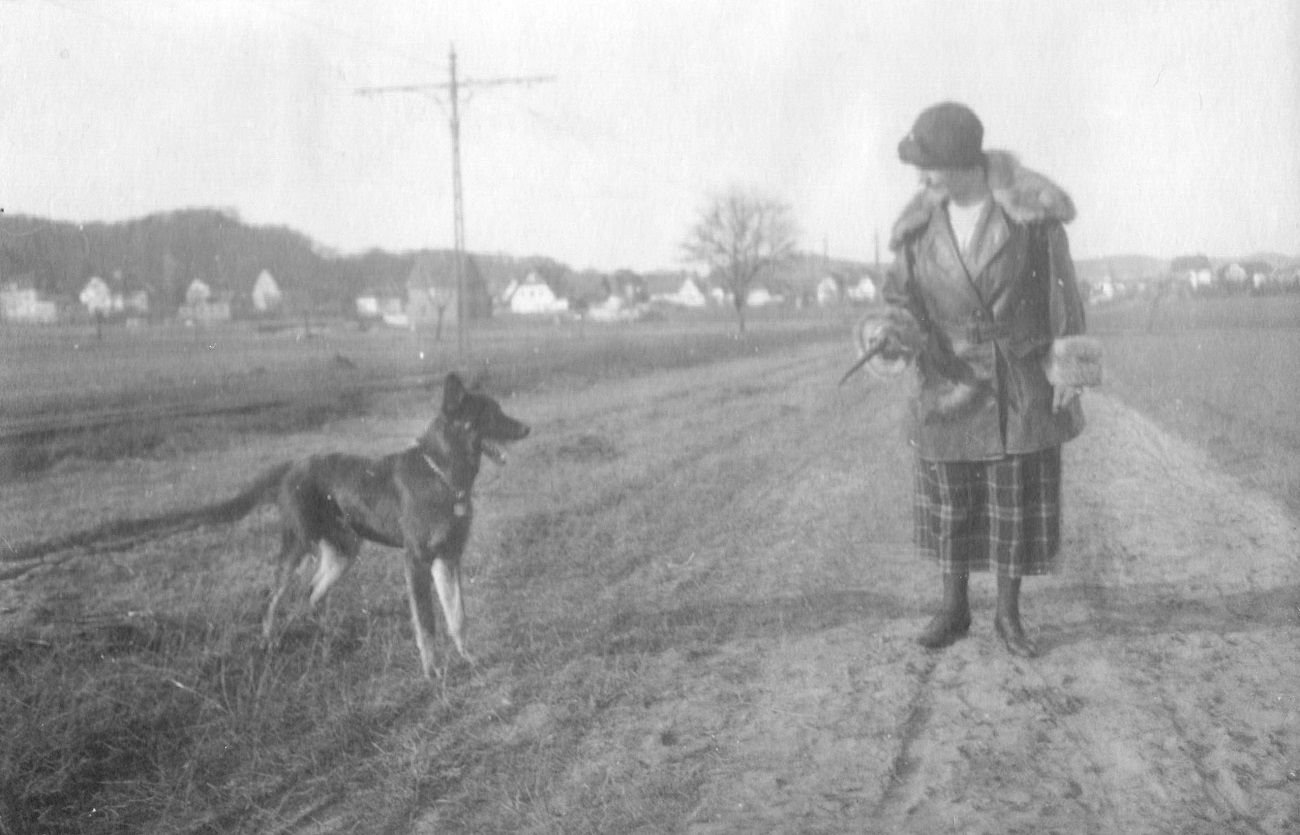 2. Joop Grimmer z psem Niggerem przy ul. Kronprinzenallee (Wita Stwosza). W głębi po lewej osiedle Heimstatte.