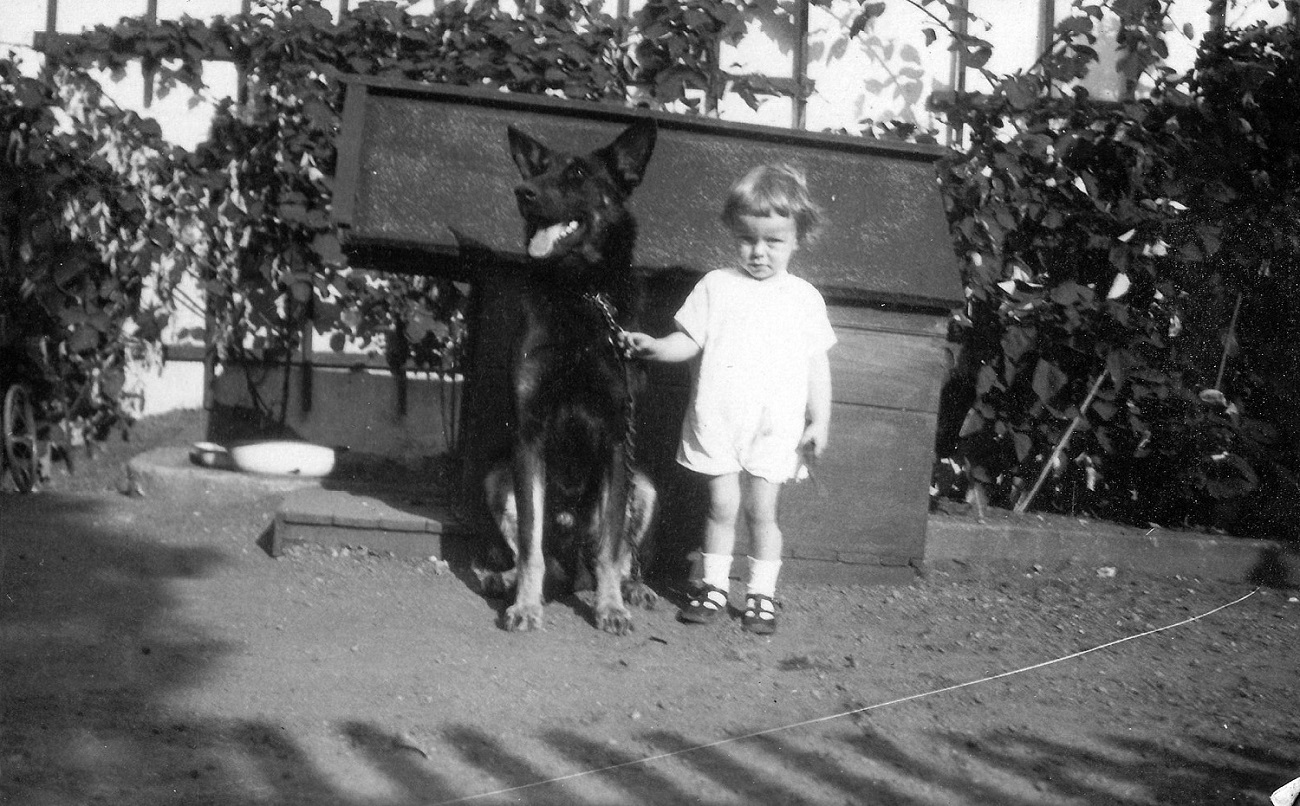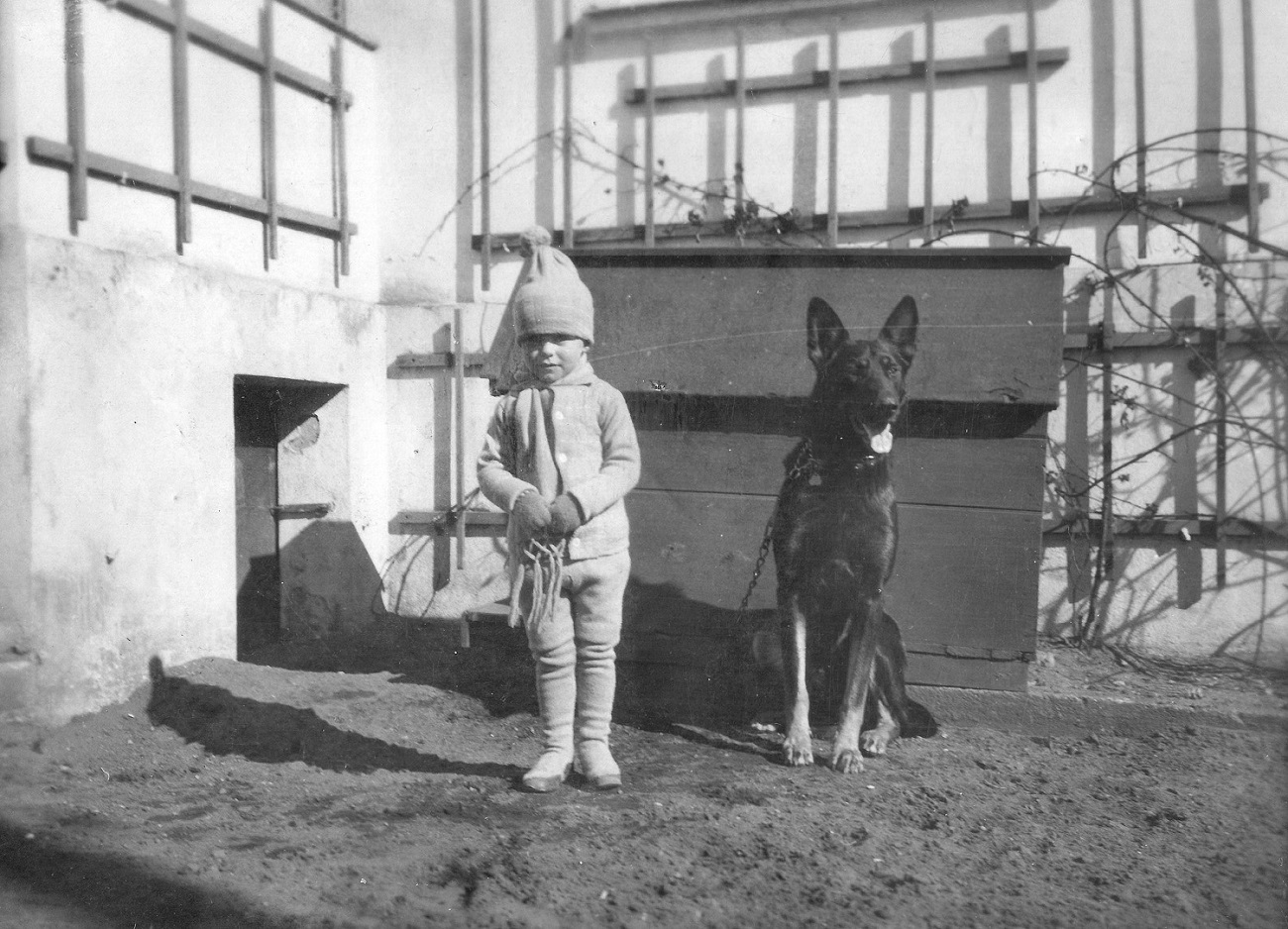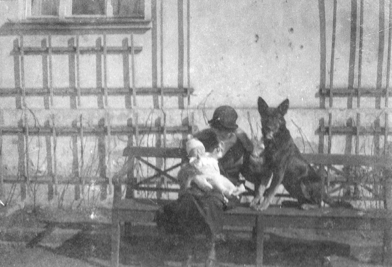 4. Joop Grimmer z synkiem i Niggerem przed domem przy ul. Kronprinzenallee 1 (Wita Stwosza 1).