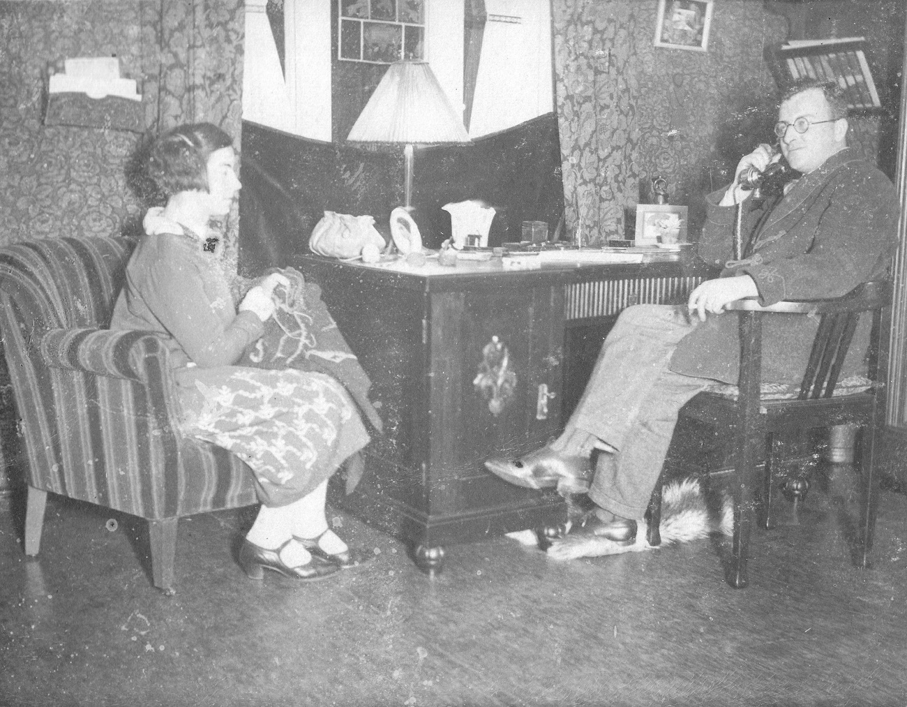 2. Joop i Otto Grommer w domu przy ul. Kronprinzenallee 1 (Wita Stwosza 1). Otto dzwoni z nowo zainstalowanego telefonu nr 166 (około 1926 r.).