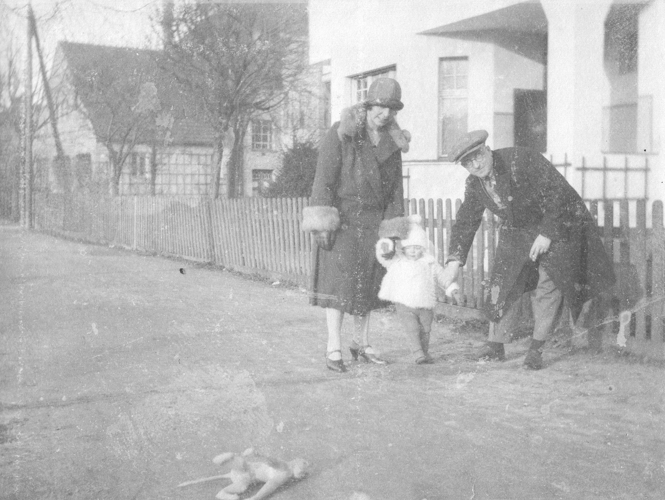 1. Joop i Otto Grimmer z synem przed domem przy ul. Kronprinzenallee 1 (Wita Stwosza 1). W budzie Nigger.