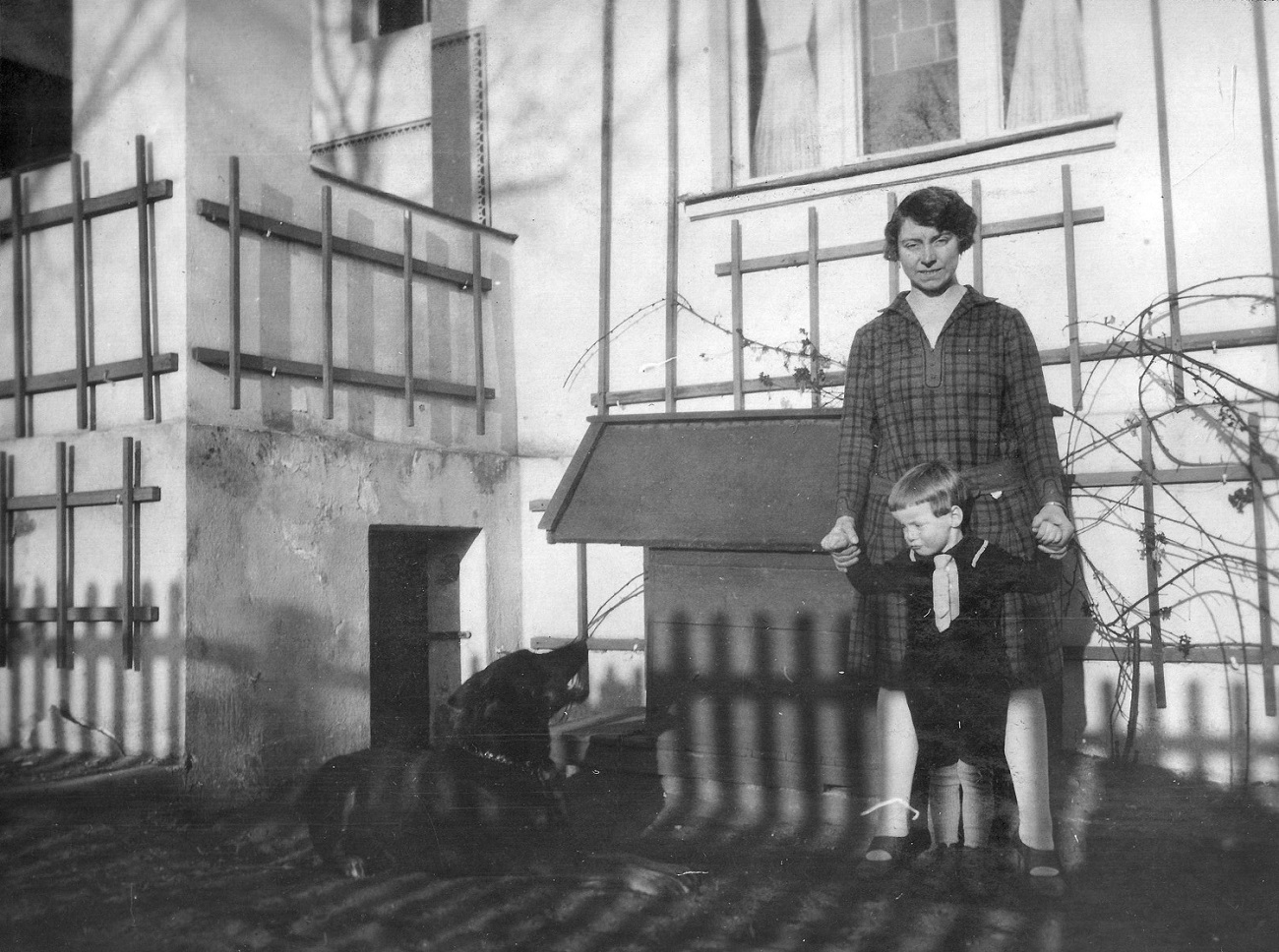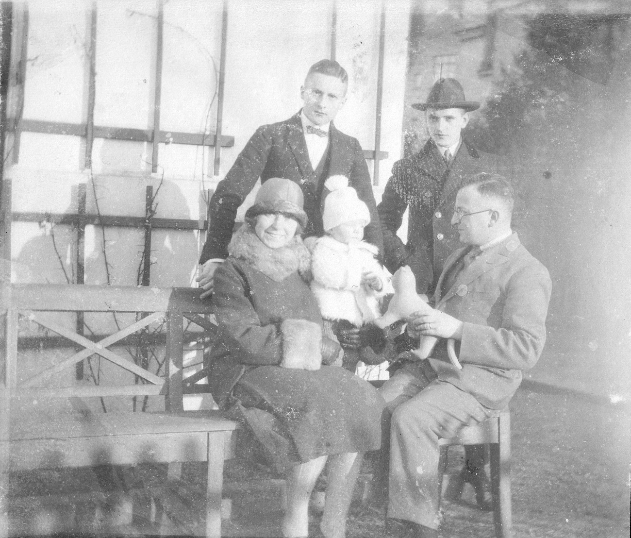 7. Otto Grimmer z synem przed gankiem przy ul. Kronprinzenallee 1 (Wita Stwosza 1).