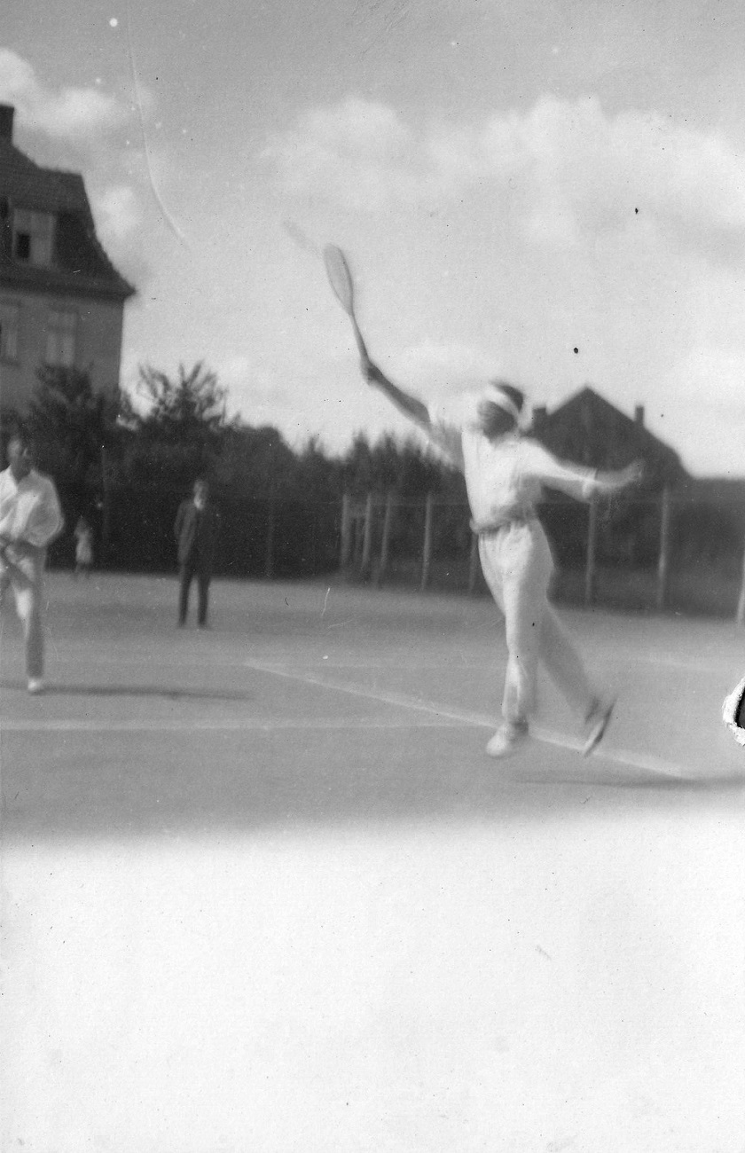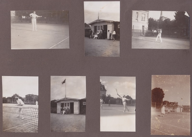 1-6. Korty tenisowe przy ul. Jahnstraße 24-25 (Alfa Liczmańskiego 24-25). Na ujęciach m.in. Otto Grimmer.