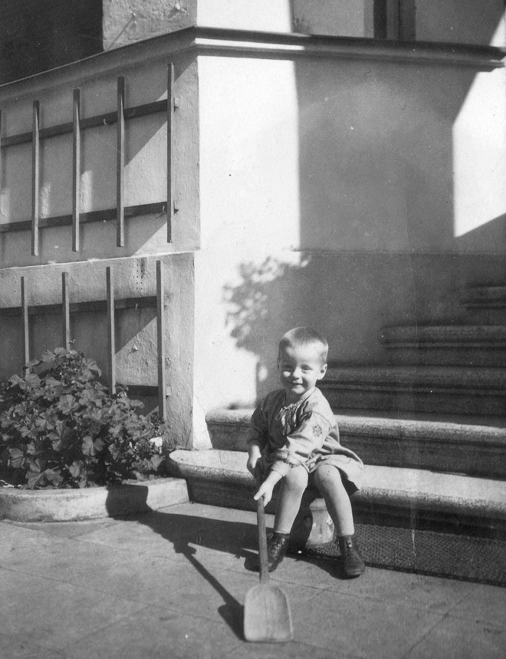 2, 5. Joop Grimmer z synkiem przed domem przy ul. Kronprinzenallee 1 (Wita Stwosza 1).