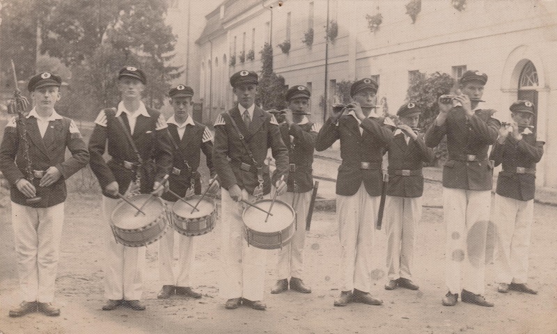 Orkiestra cechu zdunów koło katedry oliwskiej, 1934 rok.