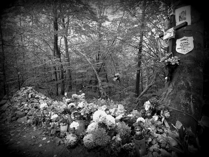 Żwirownia za III Dworem. Na wzgórzu upamiętniono śmierć młodego chłopaka. 1.10.2020.