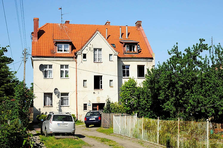 Dom przy ul. Bałtyckiej 9, widziany właśnie z tej ulicy. Nad wejściem do budynku widoczna jest płaskorzeźba. Zdjęcie wykonałem 01.06.2014 r.