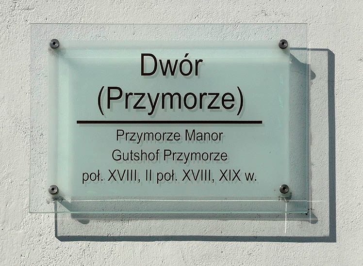 Informacja na szklanej tafli, umieszczona przy wejściu do pawilonu ogrodowego dworu w Parku Przymorze. Fot. Krzysztof Kamiński - 03.05.2014 r.