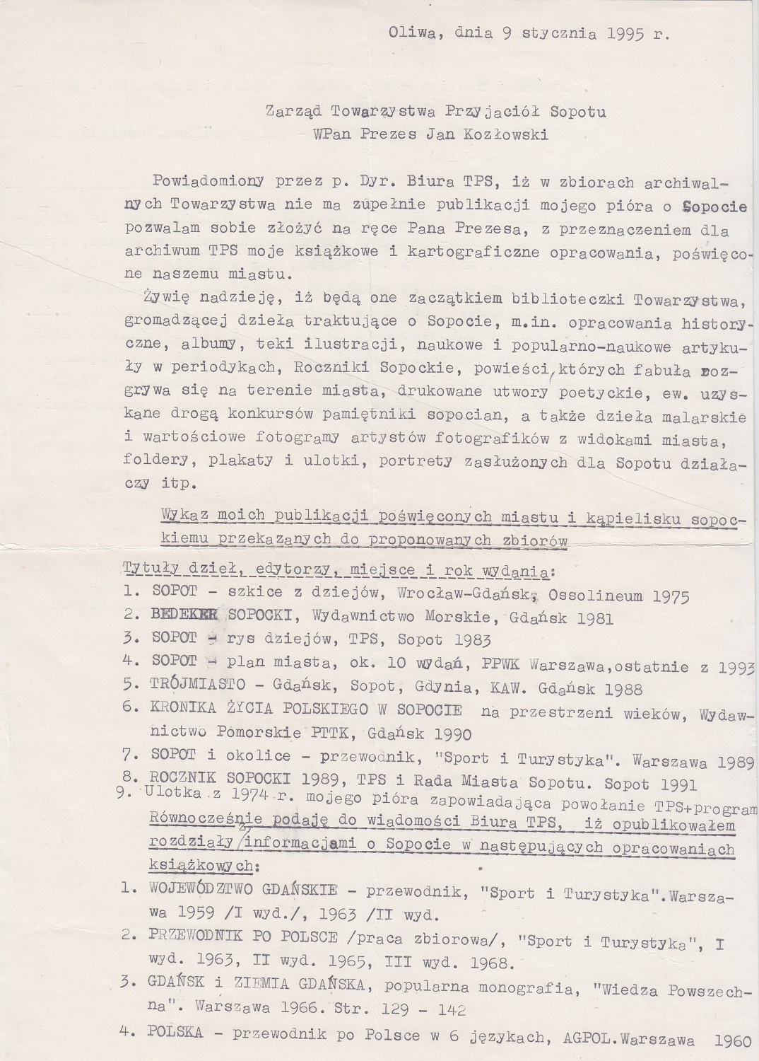 Oliwa, dnia 9 stycznia 1995 r.
