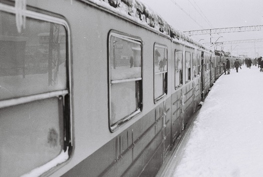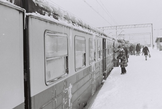 Przystanek SKM Gdańsk Przymorze. Zima 1974 roku. Fot. Marusz Szczechowicz.