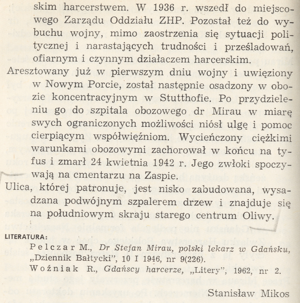 Pelczar M., Dr Stefan Mirau, polski lekarz w Gdańsku "Dziennik Bałtycki", 10 I 1946, nr 9(226).