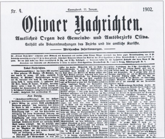 Artykuł z gazety "Olivaer Nachrichten" z dnia 11.01.1902 roku. Mieczysław Abramowicz, Byl sobie Gdansk (3) 12.1997 (s25).