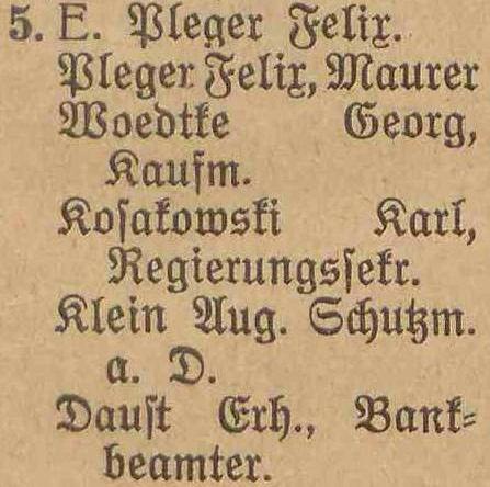 wydawanych od lipca do sierpnia 1913 roku Pleger reklamował pokoje dla letników w budynku nr 5 przy ul. Albertstraße.