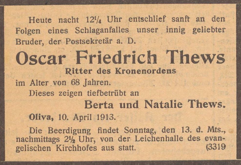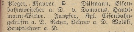 Dittmann, Wilhelm, strażnik kolejowy w stanie spoczynku (Eisenbahn Kassenvorsteh. a.D).