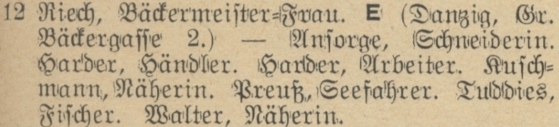 Riech. Książka adresowa gminy Oliwa z 1915 roku. Źródło: Mieszkańcy Jelitkowa - 1909-1925. DawnaOliwa.pl.
