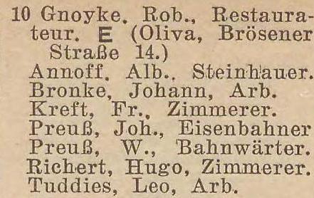 H. Kreft. Książka adresowa gminy Oliwa z 1909 roku. Źródło: Mieszkańcy Jelitkowa - 1909-1925. DawnaOliwa.pl.