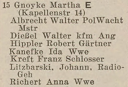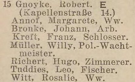 Robert Gnoyke. Książka adresowa z 1926 roku. Ze strony: wiki-de.genealogy.net.
