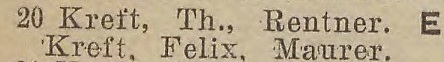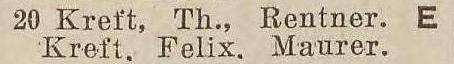 Kreft. Książka adresowa gminy Oliwa z 1915 roku. Źródło: Mieszkańcy Jelitkowa - 1909-1925. DawnaOliwa.pl.