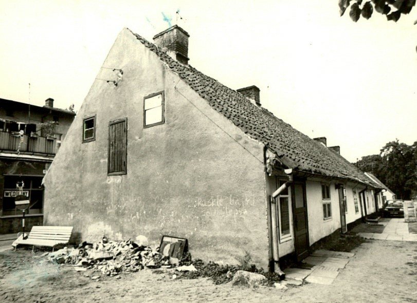 .jpg) Po lewej budynek nr 36, w którym mieścił się sklep. W głębi nr 39 i po pra-wej domek rybacki numery: 20-21, 26-27. Int.: www.wolneforumgdansk.pl.