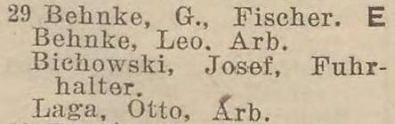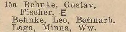 Glettkau (1909) -› Glettkau 22 (1910-1914) -› Glettkau Dorfstraße 15 (1915-1921) -› Dorfstraße 15 (1925-1928) -› Dorfstraße 15a (1929) -› Dorfstraße 29 (1931-1942).