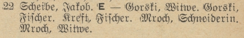 Jacob Scheibe, rybak. Książka adresowa z 1898 roku. Zbiory Pomorskiej Biblioteki Cyfrowej.