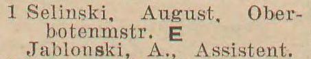 August Selinski. Książka adresowa z 1933 roku. Zbiory Pomorskiej Biblioteki Cyfrowej.