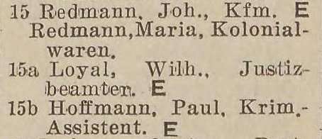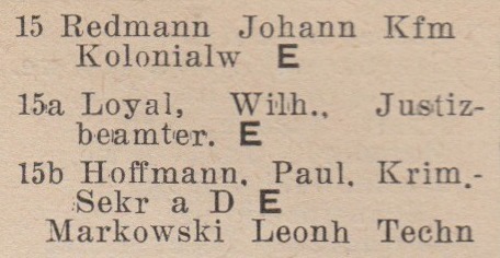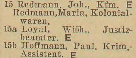 Johann Redmann. Wilhelm Loyal. Pail Hoffmann. Książka adresowa z 1942 r. Zbiory Pomorskiej Biblioteki Cyfrowej.