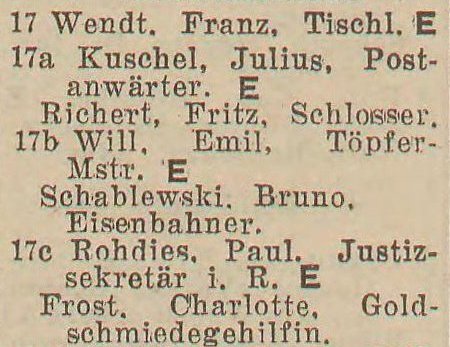 Adres: Blücherstraße 17. Gertruda Wendt (ur. 1924, zm. 30.03.1944 - epilepsja). Źródło: , 03.1944 poz. 34.