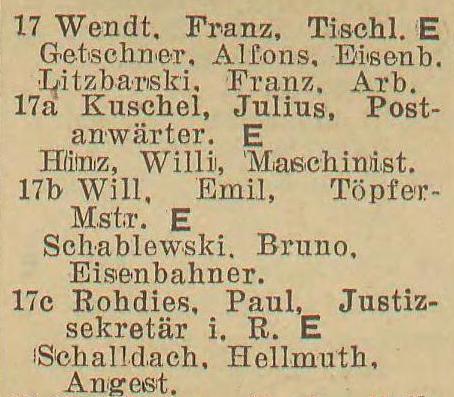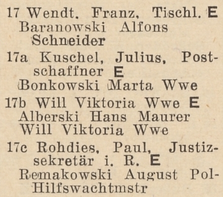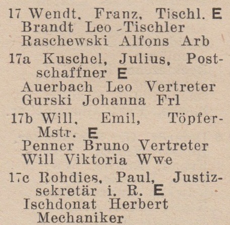 Franz. Wendt. Julius Kuschel. Viktoria Will. Paul Rohdies. Ks. adr. z 1940-1941 r. Zbiory TPG Strefa Historyczna WMG.