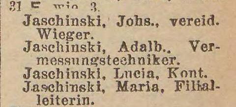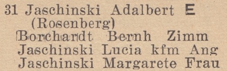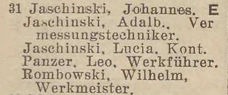 Adalbert Jaschinski. Książka adresowa z 1937-1938 roku. Zbiory Piotra Mazurka.