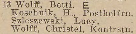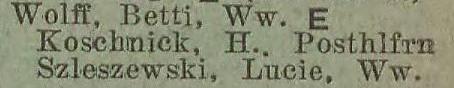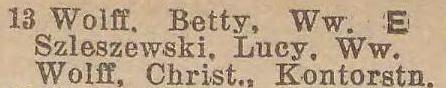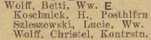Betti Wolff. Książka adresowa z 1926 roku. Ze strony: wiki-de.genealogy.net.