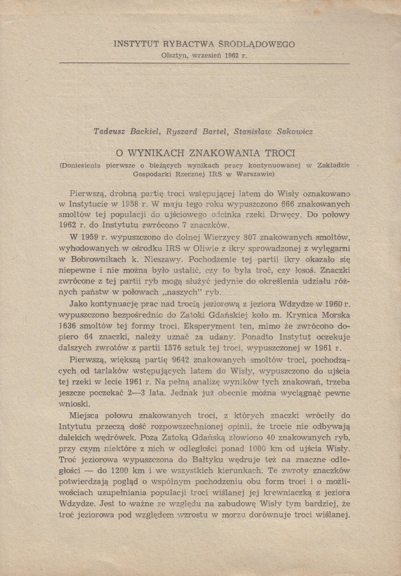 Instytutu Rybactwa Śródlądowego, Olsztyn, wrzesień 1962.