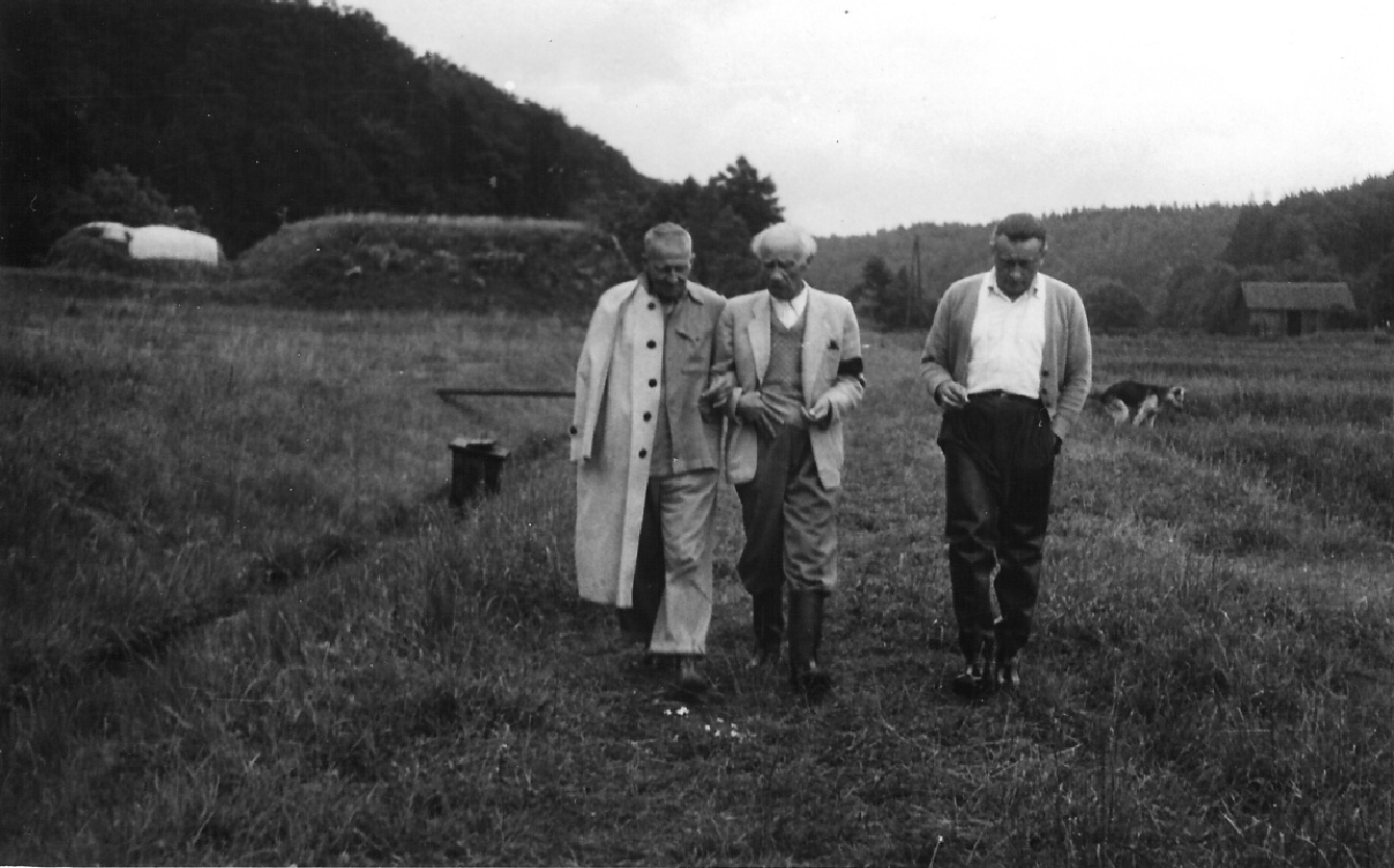 Fot. 6. Terenowa Pracownia Rzeczna w Gdańsku Oliwie późne lata pięćdziesiąte. Od lewej prof. Stanisław Sakowicz, prof. Franciszek Staff i dr Jan Jokiel.