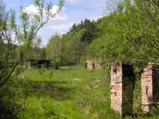 MŁYN XX. Powyżej fermy lisów zachowany mały stawek i tama z fabryczki fornieru.