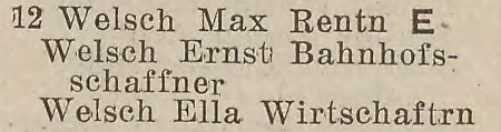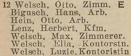 Welsch. Książka adresowa gminy Oliwa z 1915 roku. Źródło: Mieszkańcy Jelitkowa - 1909-1925. DawnaOliwa.pl.