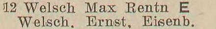 Max Welsch. Książka adresowa gminy Oliwa z 1916 roku. Źródło: Mieszkańcy Jelitkowa - 1909-1925. DawnaOliwa.pl.