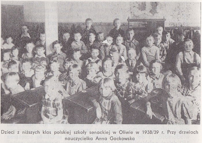 W 1932 r. istniały już dwie klasy z polskim językiem nauczania W jednej zgrupowane były dzieci z I, II i III rocznika. Uczęszczało do niej 56 dzieci. Uczyła je wówczas Helena Mosa, zniemczona Kaszubka z Chyloni. Starszą grupą opiekował się Bruno Bonus ze Starego Targu pod Sztumem, Niemiec z pochodzenia, znający język polski. W grupie tej udzielano tygodniowo: 5 godzin nauki religii, 6 języka niemieckiego 5 języka polskiego, 4 rachunków, 3 przyrody, 1 historii, 1 nauki o ziemi 1 śpiewu, 1 robót ręcznych, 1 rysunków i 2 godzin gimnastyki. Lekcje religii odbywały się w języku polskim bądź w niemieckim. Jakiś czas dz.ec. uczyły się historii Polski a "Czytanki historycznej" Fiszerówny pozn.ej uczono je wyłącznie historii Niemiec. Jedynie podczas lekcji języka polskiego przerabiano wyrywkowe tematy z historii Polski W roku szkolnym 1932/1933 czynna już była w Oliwie szkoła polska, ale władze niemieckie unikały w pismach tej nazwy i stosowały tytuł "Polnische Klassen". Ludność polska Oliwy domagała się wówczas szkoły czteroklasowej. W sprawozdaniu Gdańskiej Macierzy Szkolnej z 1936 r. jest mowa o istnieniu w Oliwie trzyklasowej polskiej szkoły senackiej. Nazwa ta oznacza, iż szkołę utrzymywały gdańskie władze senackie. Uczęszczało do niej w tym czasie 140 dzieci. Nauczycielami byli głównie zgermanizowani Kaszubi, uważający się za Niemców. W roku szkolnym 1933/1 934 pracowała w tej szkole Polka Maria Mirau, siostra znanego polskiego działacza i patrioty. Po jej odejściu nastała również Polka Anna Gackowska, czynna także po 1 945 r. Ostatnim kierownikiem polskiej szkoły był Jan Muzioł, Polak, lgnący jednak do niemczyzny, wszystkie swoje dzieci posyłający do szkół niemieckich. Z polskimi organizacjami współpracowały jedynie Mirau i Gackowska.