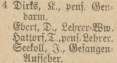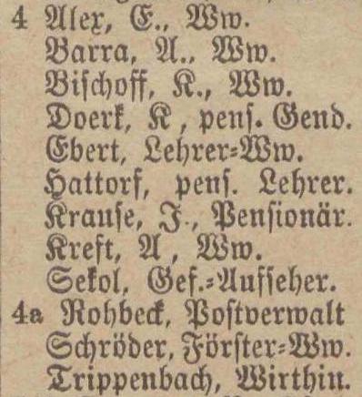 Bach, Marianne, geb. Jantowski, Wittwe. Hattorf, Theodor, Lehrer a. D. Kornjewski, Bernhard, Gef-Auff.