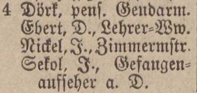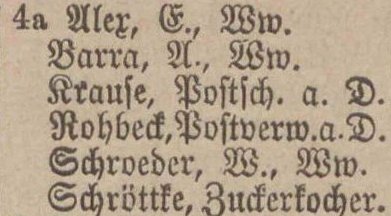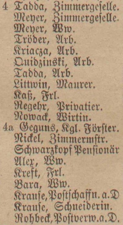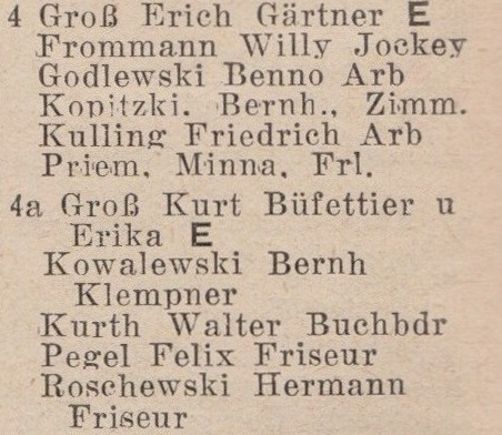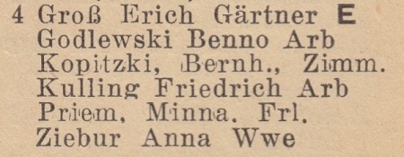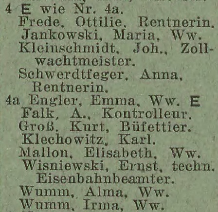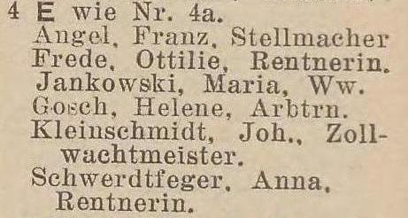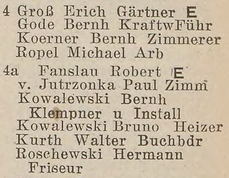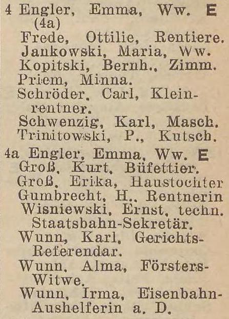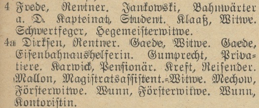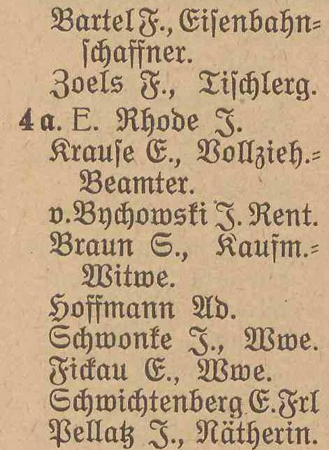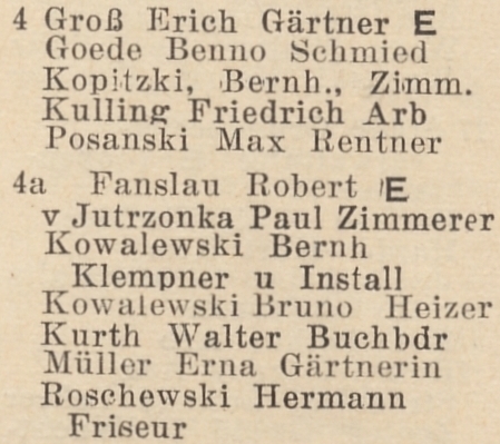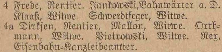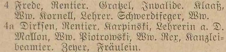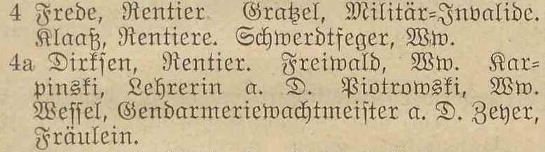 W (Ludolfiner Straße 4): Dirksen (4 osoby), Gratzel (2 osoby), Klaaß (3 osoby), Piotrowski (3 osoby), Schwertseger (5 osób).