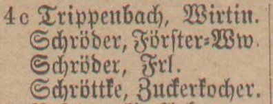 W 1902 roku letników przymowali: Alex (Emilie) - 3 osoby, Rohbeck (Michael) - 4 osoby, Schroeder (Klara) - 1 osobę. Ludolphiner Weg 4A (Olivaer Nachrichten, ).