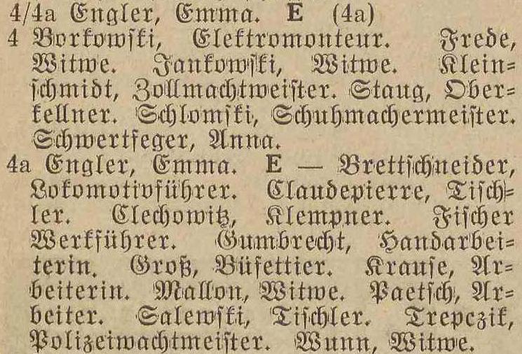 Emma Engler. Książka adresowa gminy Oliwa z 1925 roku. Zbiory Pomorskiej Biblioteki Cyfrowej.