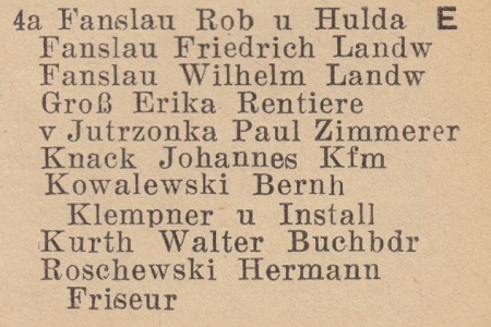Erich Groß. Robert Fanslau. Książka adresowa z 1942 roku. Zbiory Pomorskiej Biblioteki Cifrowej.