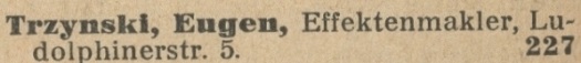Eugen Trzynski. Książka telefoniczna z 1925 roku. Zbiory Mirosława Piskorskiego.