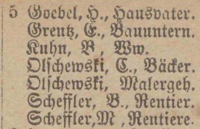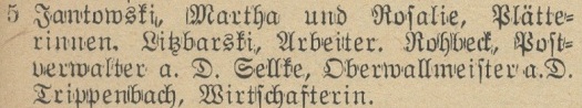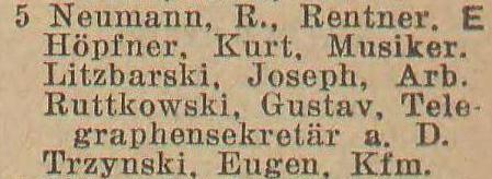 W (Ludolfiner Straße 5): Jantowski (9 osób), Litzbarski (3 osoby).