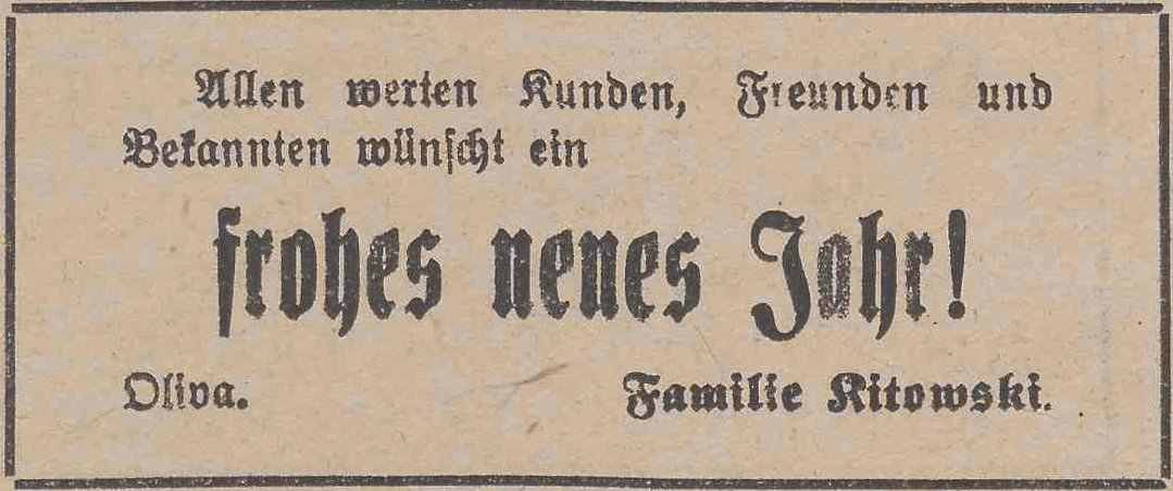 Familie Kitowski. Podziękowania noworoczne, Danziger General (Olivaer Zeitung) nr 306 z 31. 12. 1926.