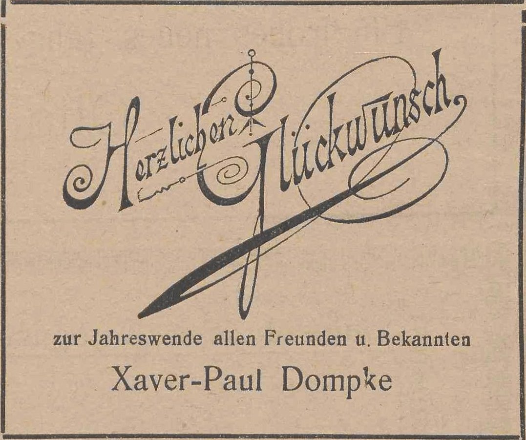 Xaver-Paul Dompke. Podziękowania noworoczne, Danziger General (Olivaer Zeitung) nr 306 z 31. 12. 1926.