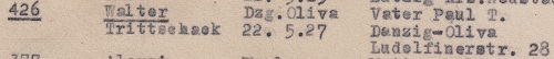 Marianne Freiger. Książka adresowa gminy Oliwa z 1916 roku. Zbiory Mirosława Piskorskiego.
